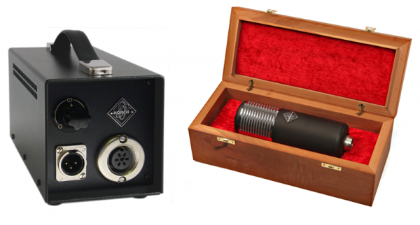 HORCH Audiogeräte Vintage Set, bestehend aus dem Mikrofon-Speisegerät 1206 Vintage und dem handgefertigten Massivholz-Etui aus hochwertigem Kirschbaum oder Nussbaum.
